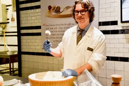 In addition to institutional commitments, a dedicated gourmet event aimed at foodies and food aficionados was held at the exclusive Eataly shop in Dubai Mall, where a wheel of Parmigiano Reggiano cheese was split open in public, and pasta dressed inside a carved half cheese wheel was served.