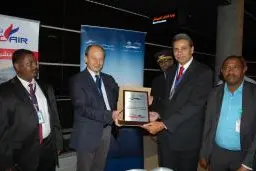 The inaugural flight was received with a ceremony comprising the Civil Defense Airport Fire Service's customary 'water arch' salute, which was held in the presence of high-ranking officials from the Embassy of The Republic of Sudan in Jordan and members of Airport International Group's management team.