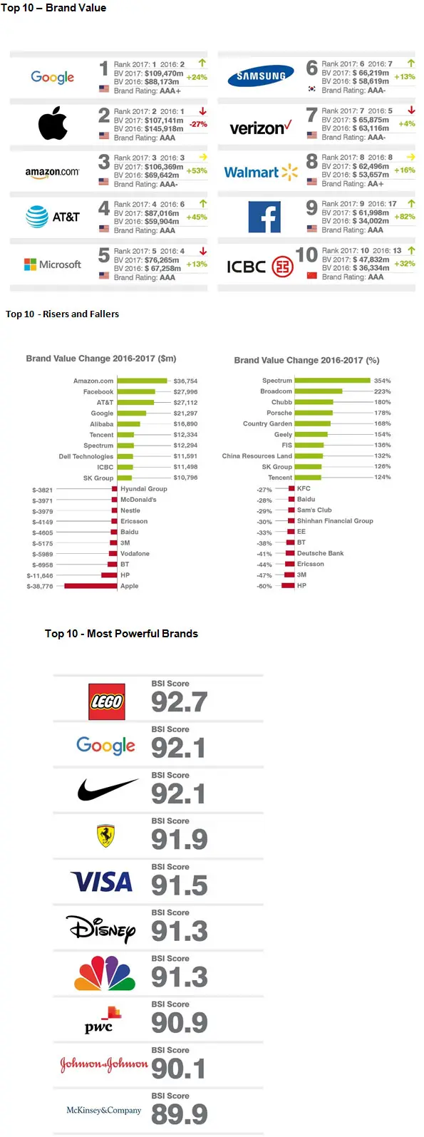 Google (1), Nike (28), Ferrari (258) and Visa (57) complete the rest of the top 5 most powerful brands in the world, with the latter seeing an 8 percentage point gain in brand strength – the most of any company in the top 10.