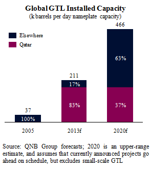 QNB Group concludes that the future of GTL will depend on whether capital costs can be kept under control and on long-term expectations for the price premium of oil over gas/LNG.