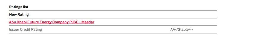 - We therefore assigned our 'AA-' long-term issuer credit rating on Masdar.