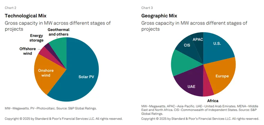 Masdar's strategy of acting as a platform investor and aggregator has significantly expanded its scale and diversity. From 2021 to March 2025, Masdar's gross capacity (considering operational, under construction, and committed projects) increased to 33 gigawatt (GW) from 15 GW. This trajectory was backed by a dual business model that combines greenfield development with strategic acquisitions--each supported by appropriate funding sources. The company has a portfolio of geographically diverse assets in strategic locations across the globe and exposed to well-proven renewable technologies, notably utility-scale solar photovoltaic (PV) and onshore wind capacity, which together account for more than 80% of Masdar's generation base. Different from its rated peers, Masdar does not carry operations in-house, but rather adopts an investor approach, outsourcing operating and construction risk to third-party contractors. Masdar's competitive advantages stem from both: