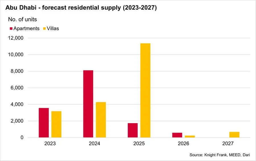 The stability in prices across Abu Dhabi's freehold areas can be attributed to the limited number of new homes currently under construction. A total of 33,700 homes are expected to be delivered by the
