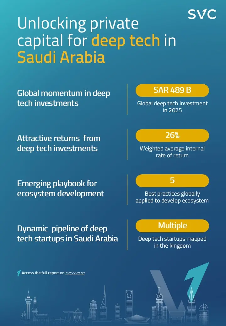 Nora Alsarhan, Deputy CEO and Chief Investment Officer at SVC, said: “Deep Tech represents a fundamental shift in global investment opportunities. It is no longer limited to technological innovation and has become a key driver of long-term economic growth, given its ability to transform scientific research into impactful products and companies. This transformation creates significant opportunities for economies that can effectively integrate research, funding, and commercialization within a unified ecosystem.”