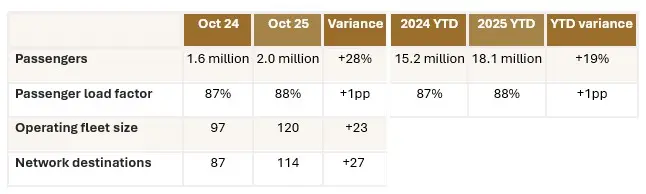 Year-to-date, Etihad has now carried 18.1 million passengers, representing 19% growth over the first ten months of 2024. The airline maintained an 88% passenger load factor in October and year-to-date, demonstrating effective capacity management alongside rapid expansion.