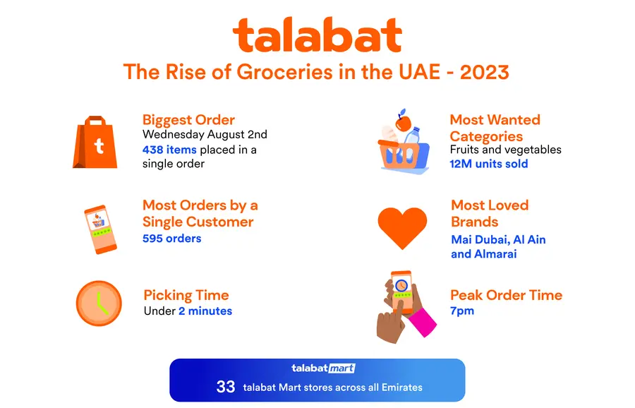 From unveiling the most monumental orders of 2023 and lightning-fast order preparation time, to highlighting the most popular products and categories, talabat takes a look at the rise of groceries in the UAE from across the year.