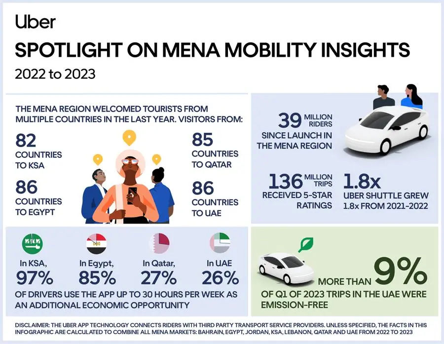 Uber announced new data-driven insights on mobility in the MENA region that show the impact of ridesharing on tourism, economic growth, and the road towards more sustainable transportation.