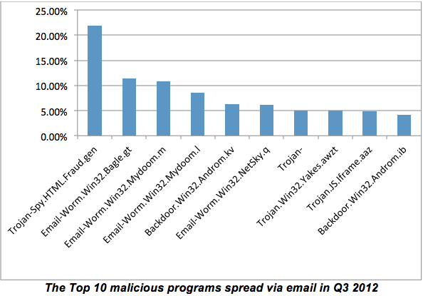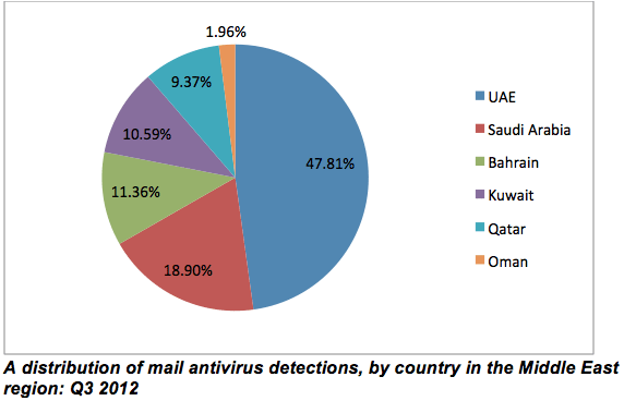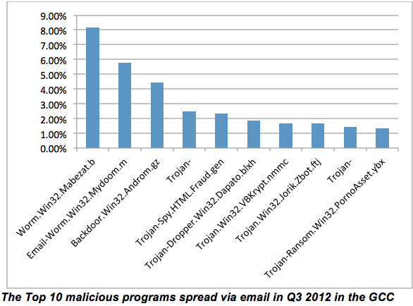 The top 10 malicious programs spread via email in Q3 2012 in the GCC countries differs from those shown above.