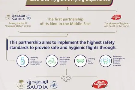 Khalil Yassine, Vice President of Customer Development Operations in the Middle East and North Africa at Unilever – the mother company of Lifebuoy said: “This partnership with SAUDIA is a unique collaboration in the Middle East, both parties occupy a notable position globally and regionally, renowned for the highest quality, care and preventive standards to serve and protect citizens and passengers”.