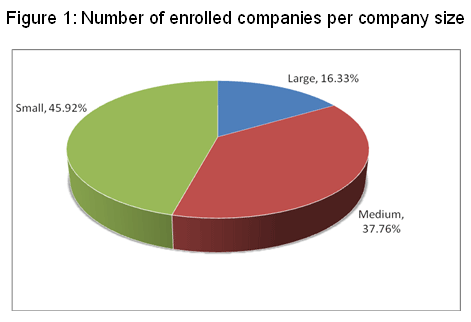 The participation of companies regardless to their size has been encouraging, according to data released by the programme manager at BDOJHC. Large proportions of engagements from small and medium size companies benefiting from the programme were achieved; see Figure 1.