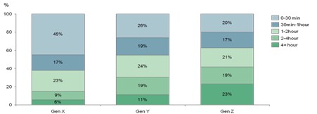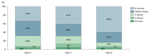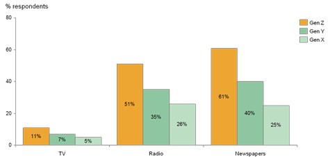 Evidence of this is that Generation X and Y spend a considerably longer amount of time on digital platforms - reading the news - compared to Generation Z. In fact, 66 percent and 59 percent of Generation X and Y, respectively, say that they spend more than 30 minutes a day reading the news online - while only 40 percent of Generation Z state that they do the same.