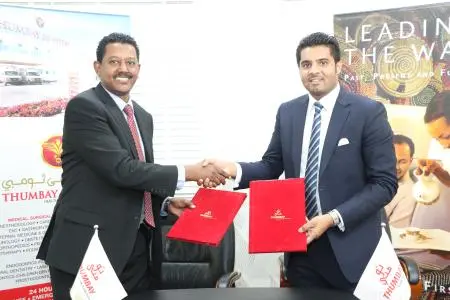 An MOU was signed between Thumbay Medical Tourism represented by Mr. Akbar Moideen Thumbay, Vice President of the Healthcare Division of Thumbay Group and Ethiopian airlines represented by Mr Ali Mohammed Regional Director-Gulf & Pakistan Ethiopian Airlines