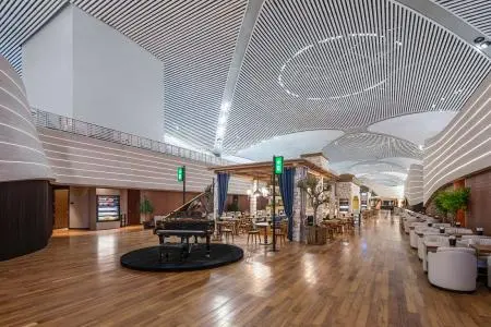 The overall design concept of the Business Class and Miles & Smiles Lounges reflect an Aegean theme, including designs depicting breezes from the Aegean region. The Ribbon wall, which is the most special figure in Turkish Airlines’ lounges and inspired by a flow motif, consists of solid wood panels that undulate through all lounges. Panels circulating in the halls have amorphous movements expressing the flow. Turkish Airlines passengers gain access to the lounges by presenting their business class tickets or Miles & Smiles Elite Plus & Elite, Star Alliance Gold and Corporate Club membership cards.