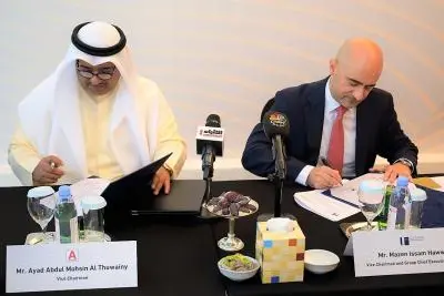 The agreement was signed between Mr. Mazen Issam Hawwa, URC’s Vice Chairman and Group Chief Executive Officer, and Mr. Ayad Abdul Mohsen Al Thuwainy, Vice Chairman of Ahmadiah Contracting and Trading Company. The signing took place in a ceremony held at URC’s project sales center in Hessah AlMubarak District and attended by the executive management of both companies.