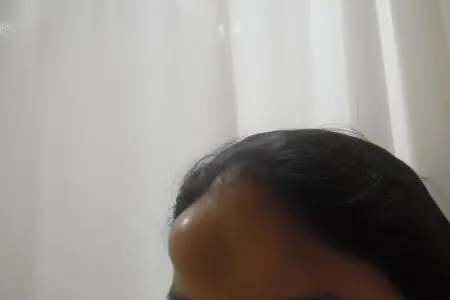 The patient wanted the extra growths to be removed without any scar on the forehead. The surgery was planned. The swollen extension was removed by a Bi-coronal approach through the scalp within the hair line to avoid any scar on the forehead. This approach is technically challenging for a surgeon. The surgery was successfully performed and the extra growth of 7x3x1.5cm in size was removed. The extracted mass was then sent for evaluation by the histopathology lab.