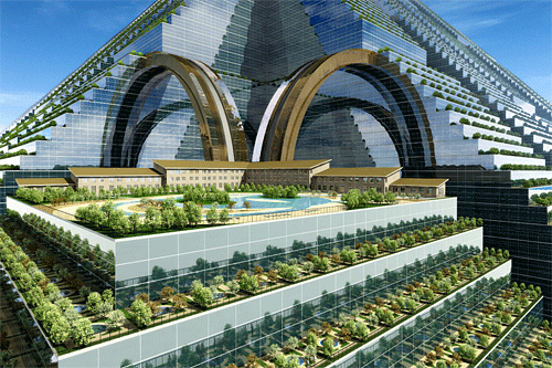 The city - called the Ziggurat project and in the shape of a pyramid - could support an entire community of up to one million people by harnessing the power of nature.