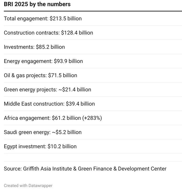 Egypt was another standout market in 2025, receiving $10.2 billion in Chinese investment and ranking among the largest BRI investment destinations globally.