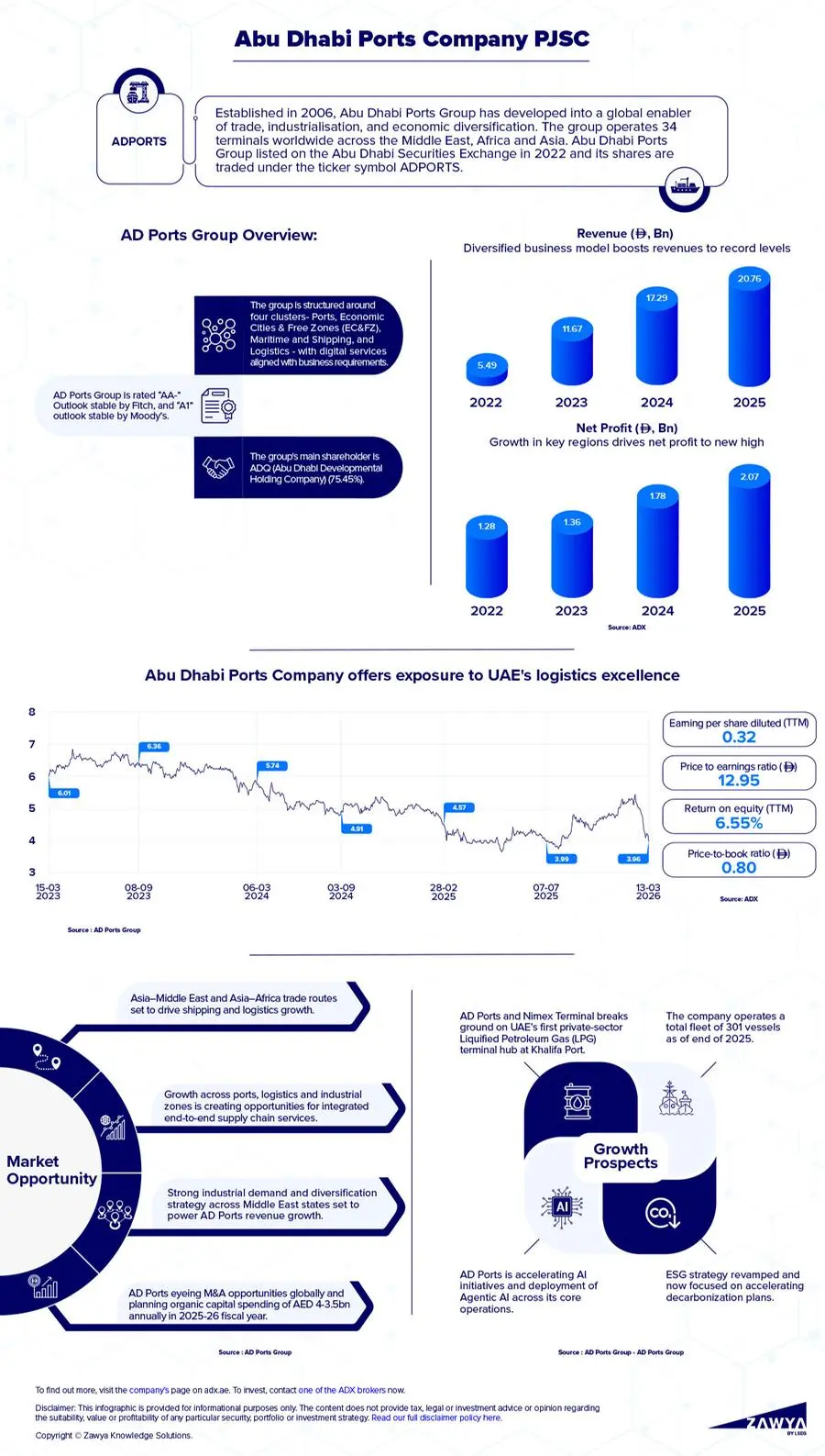 Established in 2006, Abu Dhabi (AD) Ports Group is an integrated trade, transport, logistics and industrial development company based in Abu Dhabi, operating under a charter approved by the Abu Dhabi Executive Council. The group has expanded rapidly in recent years and now operates in more than 50 countries across five continents.