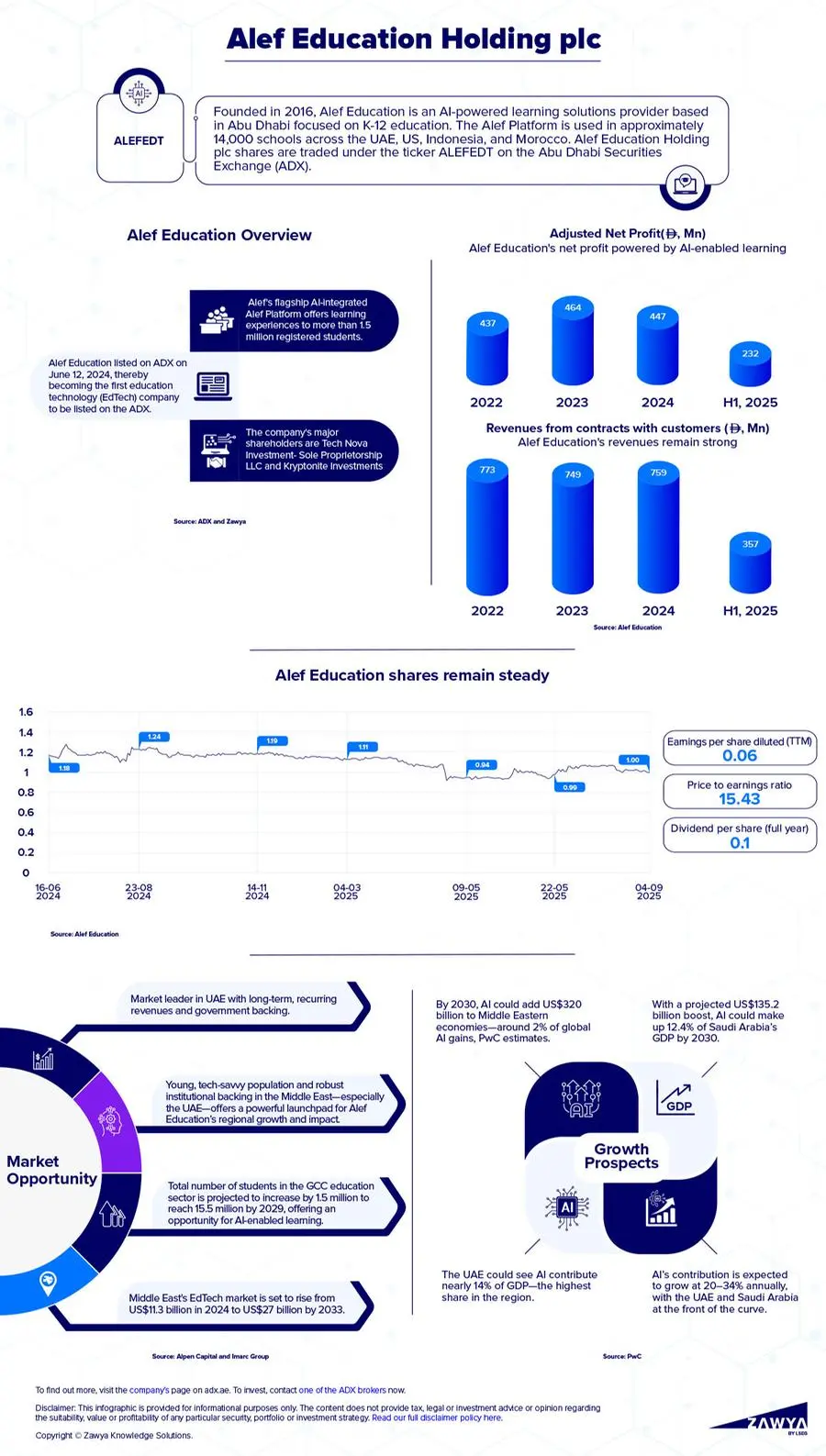 Alef Education is focusing on innovation-led growth, scaling through strategic partnerships and pursuing opportunistic international expansion. It has secured over 33% of UAE private schools and its strong B2B momentum continues. It has also secured new government contracts, and its platform is primed to scale from grades 5 to 12 and kindergarten to 4th grade, unlocking broader market potential.
