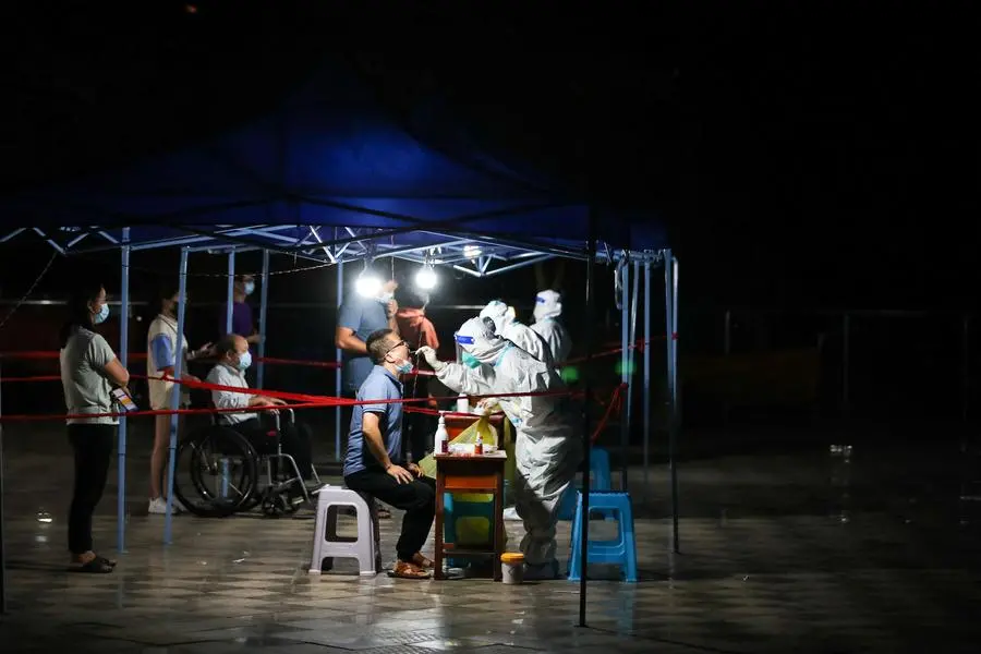 China's southern technology hub of Shenzhen reported 20 new domestically transmitted COVID-19 infections, down from 28 a day earlier.