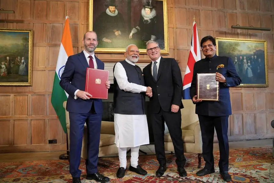 Britain and India signed a free trade agreement on Thursday during a visit by Indian Prime Minister Narendra Modi, sealing a deal to cut tariffs on goods from textiles to whisky and cars and allow more market access for businesses. The two countries concluded talks on the trade pact in May after three years of stop-start negotiations, with both sides hastening efforts to clinch a deal in the shadow of tariff turmoil unleashed by U.S. President Donald Trump.