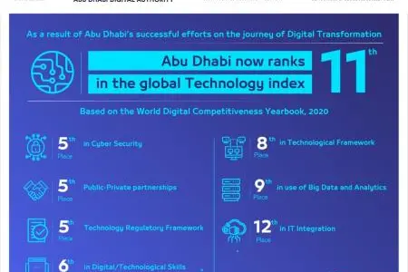 Abu Dhabi has reached advanced places in various indices related to digital transformation, ranking fifth in Cyber Security, Public-Private Partnerships, and Technology Regulatory Framework indices.