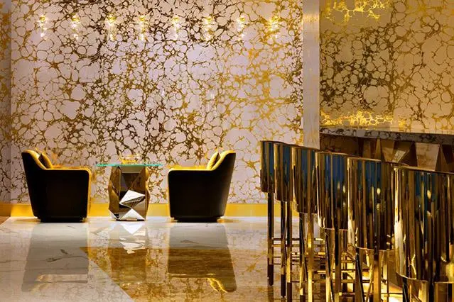 Situated on the top floor of the sail-shaped hotel, 'Gold on 27' has textured walls which "shimmer with gold" and special lighting effects which emphasise the bar's art deco design, owner Jumeirah Group said.